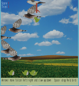 Data Structure and Algorithmic Problem Solving II was one of my least favorite classes content wise, but I’m very proud with how we were able to make the most complete game of our small class. I put forth the initial idea of a crane game and then one group member loved birbs(birds but adorable). I personally made all of the gamestates, scoring, etc. as well as helped with our Entity class, Seperating Axis Theorem, and Octrees. I also made it so that you only lose points if a Hawk knocks the birb out of your claw, so dropping the birb yourself or hoping you can outmaneuver the Hawk is a neat decision the player has to make.