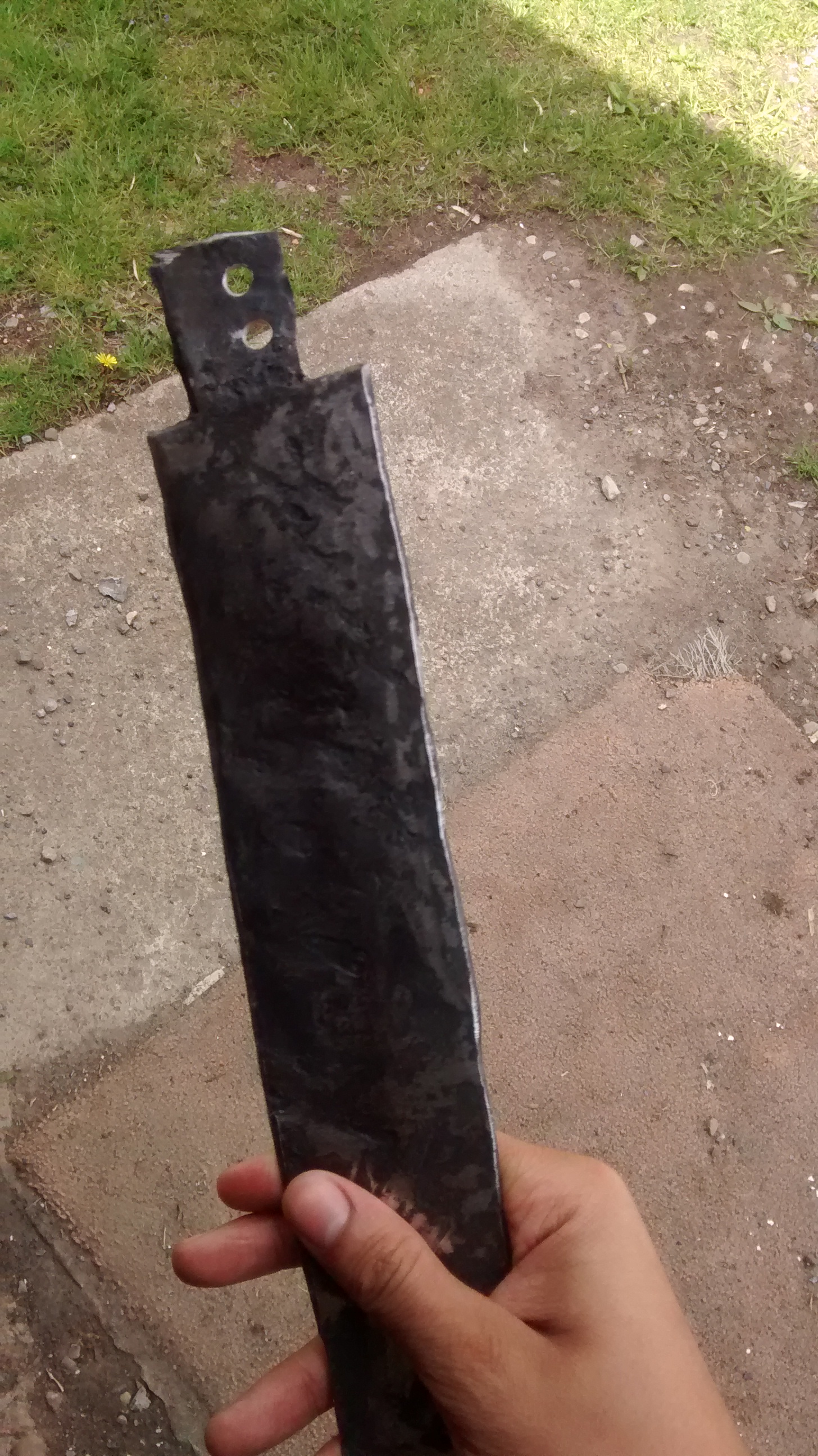 We drilled carefully into the tang so it would fit into the hilt