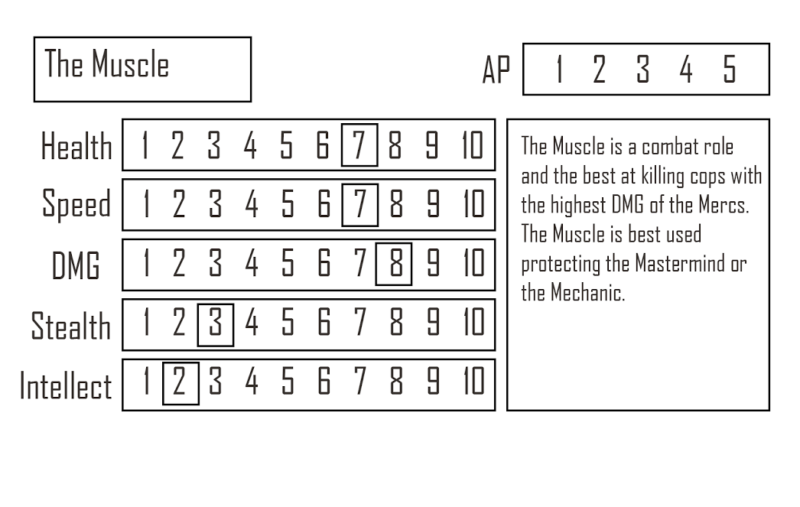 Players have 4 different roles each suited to different tasks; but if they find a task they’re not suited for they can spend “AP” or Action Points for a single turn boost- but the person they pay those points to is “The Man” themself