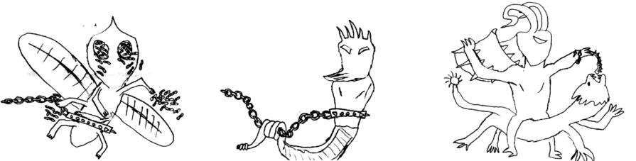 Since the game is about monsters building up, we have different levels of monsters and their artwork shows where they are in level ie. Level 1 demons are chained and Level 3 demons have freed themselves